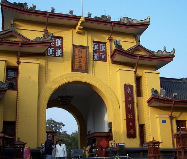 三元及第坊在靖江王城南面正陽(yáng)(端禮)門(mén)上。清代學(xué)者阮元任兩廣總督時(shí)為連中“三元”的陳繼昌所立。三元, 是省級(jí)的“鄉(xiāng)試”、全國(guó)的“會(huì)試”和皇帝親自主持的“殿試”均名列第一, 分別獲得“解元”、“會(huì)元”、“狀元”稱(chēng)號(hào)的縮略。自唐代以科舉取士1000多年來(lái), 連中三元的僅13人, 清代兩百多年中僅有2人。陳繼昌是臨桂人, 把用巨石鐫刻的牌坊置于王城正門(mén)之上, 是封建社會(huì)給科舉成名者的至高榮譽(yù)。