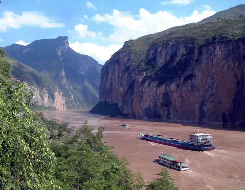 奔騰咆哮的長江,一進(jìn)峽谷便遇上氣勢赫赫的夔門。夔門兩岸的山峰,陡削如壁,拔地而起,把滔滔大江逼成一條細(xì)帶,蜿蜒于深谷之中。這里河寬只有一、二百米,最窄處不過幾十米;而兩岸主要山峰可高達(dá)1000-1500米。這里峽深水急的江流,綿延不斷的山巒,構(gòu)成了一幅極為壯麗的畫卷。正如郭沫若《過瞿塘峽》一詩所云:“若言風(fēng)景異,三峽此為魁”。 瞿塘峽以“雄”著稱。西端入口處,兩岸斷崖壁立,高數(shù)百丈,寬不及百米,形同門戶,名“夔門”,素有“夔門天下雄”之稱;左邊的名為赤甲山,版權(quán)所有聊城聊之旅國際旅行社有限公司,轉(zhuǎn)載必究!右邊的名為白鹽山,不管天氣如何,總是迂出一層層或明或暗的銀輝。長江辟此一門,浩蕩東瀉,兩岸懸崖峭壁如同刀削斧砍,山高峽窄,仰視碧空,云天一線,峽中水深流急,江面最窄處不足五十公尺,波濤洶涌,奔騰呼嘯,令人驚心動魄。