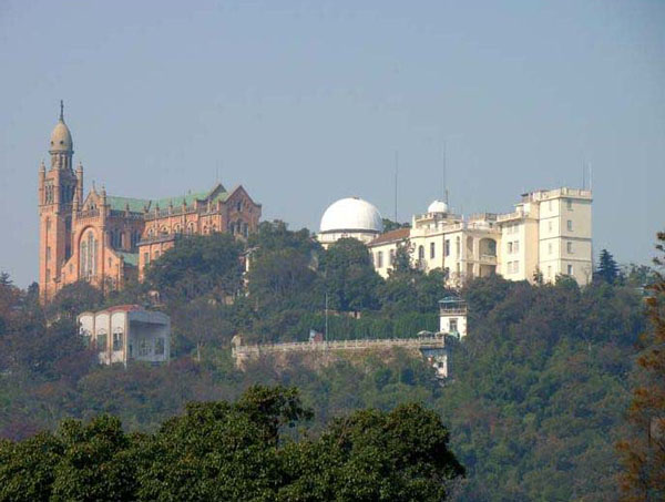 位于山頂南部,由耶穌會神甫集資建于清光緒二十七年,圓形拱頂及0.4米天文望遠(yuǎn)鏡均訂購于法國。解放后隸屬于紫金山天文臺,1962年起改稱為中國科學(xué)院上海天文臺佘山工作站。1987年在天主教堂西側(cè)建新天文臺,安裝了國產(chǎn)的1.56米天體測量望遠(yuǎn)鏡,舊天文臺供游客參觀。