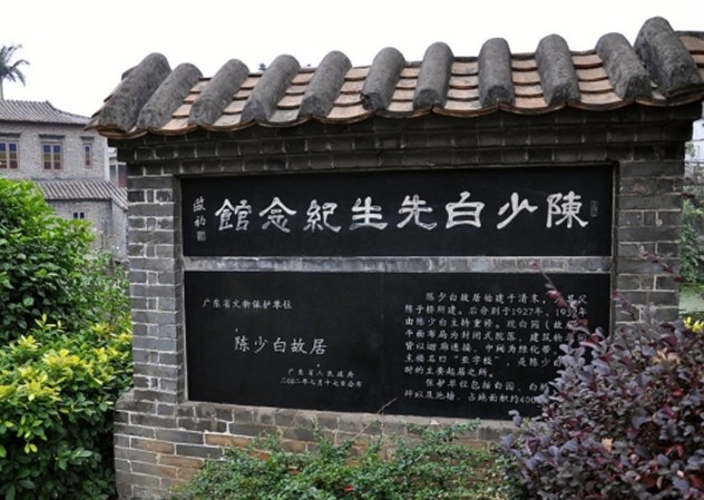 位于江門市江海區(qū)外海鎮(zhèn)南華里。由陳少白自行設(shè)計。故居分兩處,隔河相望,以自橋連為一體。橋的一邊是"白園",另一邊是一座"三合院"式的居所。始建于1929年,1931年落成,占地面積兩畝許。自少白逝世后,其家居多旅居外地,樓宇日久失修,漸顯頹敗。1991年春,外海鎮(zhèn)政府撥出巨款?對"白園"和園內(nèi)的"莎蘿坪"、"粥鍋亭"、"瞻云臺"等建筑,以及"三合院"和院內(nèi)的"亞字樓"等都一一進行了修復(fù)。