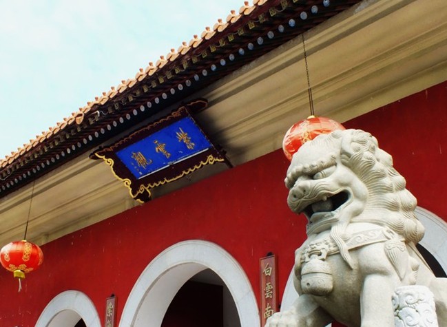 遠(yuǎn)望這座仿古建筑群,流光溢彩,氣勢(shì)非凡。門前有6000多平方米的停車場(chǎng),室外的地面砌花崗巖石,綠樹紅花點(diǎn)綴其間。版權(quán)所有山東聊城聊之旅國際旅行社有限公司,轉(zhuǎn)載必究!進(jìn)入山門后,兩邊分別是鐘樓和鼓樓,中間有一座漢白玉石雕砌的會(huì)仙橋。各建筑物的梁柱和走廊間繪制了許多花鳥、山水、人物圖畫,體現(xiàn)了濃厚的文化品味。宮觀內(nèi)各殿堂安坐的神像有靈官護(hù)法、玉皇大帝、三清道祖、呂洞賓仙師、黃大仙、斗姆、六十太歲、關(guān)圣帝君、北帝、李涵虛祖師、觀音大士、天后、龍母等九十多尊。神像雕塑,道骨清相,神態(tài)逼真,形象慈祥、威嚴(yán)、端莊。