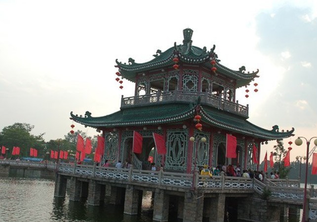 建于1958年,在榕城西南,傍依榕江南河,園內(nèi)西湖岸柳垂蔭,碧波蕩漾。湖中有兩層湖心亭,九曲橋由亭向左右伸展,如龍臥波,橋下游艇穿梭,錦鱗來去,令人神怡。依欄遠(yuǎn)眺,一湖景致盡收眼底。橋頭的“雙象戲水”大型雕塑,高6.6米,大象長鼻高揚(yáng),仰天噴水,小象則天真嬉戲,版權(quán)所有山東聊城聊之旅國際旅行社有限公司,轉(zhuǎn)載必究!依偎在旁。園中并有少年宮、游泳池、兒童樂園等,并辟有百花圃,群卉競放,姹紫嫣紅。