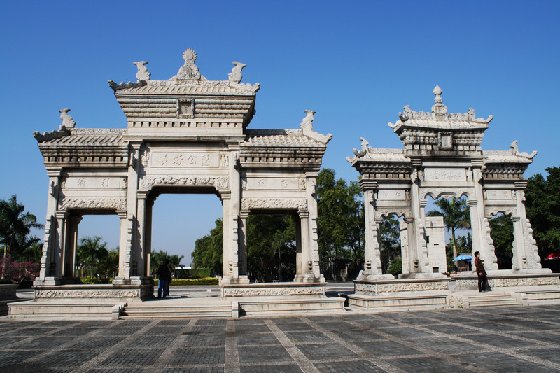 梅溪牌坊在珠海市前山鎮(zhèn)梅溪村。清光緒帝為旌表當?shù)剜l(xiāng)紳、首任清政府駐檀香山總領事陳芳及其父母等人造福桑梓于十二年(1886年)和十七年共賜建牌坊4座,版權所有山東聊城聊之旅國際旅行社有限公司,轉(zhuǎn)載必究!現(xiàn)存的3座牌坊并排而立。牌坊集西方的裝飾風格和傳統(tǒng)的中國建筑結(jié)構為一體,中西合璧,巍峨壯觀,工藝華美,是華南地區(qū)罕見的古建筑,也是珠海有名的十景之一。