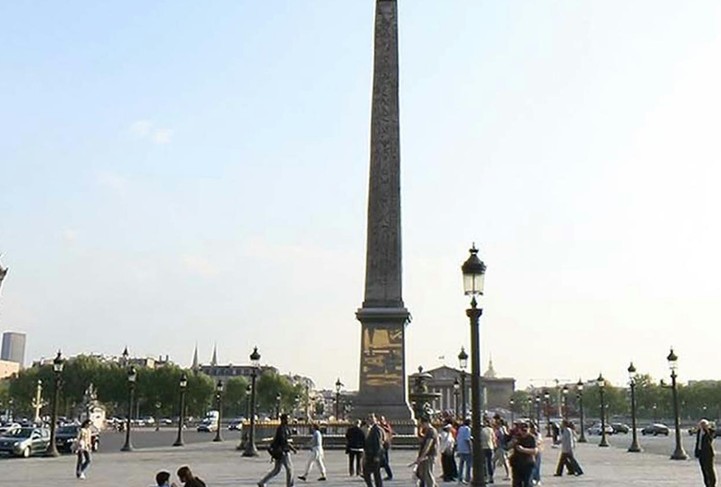 協(xié)和廣場位于巴黎市中心,塞納河北岸,是法國最著名的廣場,18世紀(jì)由國王路易十五下令營建。建造之初是為了向世人展示他至高無上的皇權(quán),取名“路易十五廣場”。大革命時期,它被稱為“革命廣場”,被法國人民當(dāng)作展示王權(quán)毀滅的舞臺。1795年改稱“協(xié)和廣場”,1840年重新整修,形成了現(xiàn)在的規(guī)模。廣場呈八角形,中央矗立著埃及方尖碑,是由埃及總督贈送給查理五世的。方尖碑是由整塊的粉紅色花崗巖雕出來的,上面刻滿了埃及象形文字,贊頌埃及法老的豐功偉績。廣場的四周有8座雕像,象征著法國的8大城市。