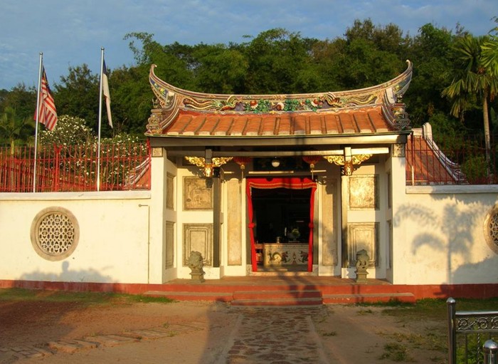 這座逾600年歷史的古墓之地,蘊含著華裔先賢在這塊土地落地生根的歷史意義。墓碑的刻字、殯葬儀式、鄰近老廟、居民生活方式,處處體現(xiàn)著華人文化堅韌的生命力。因此,三寶山不僅是一座歷史古跡,更是華人文化的發(fā)祥地。每年全國華人文化節(jié)的文化薪火,要在三寶山點燃,再傳至其它州,即有文化傳承,既承又傳,有承上啟下的深遠意義。這也是為何外州關心文化人士,都將三寶山視為文化寶山之故。建筑形式,紅墻配琉璃瓦,房頂飛檐描有彩龍戲珠的圖案,廟內(nèi)供有鄭和座像。西南山麓有佛寺,稱三寶寺;寺旁有井,稱三寶井,傳說為鄭和所鑿。山腳聳立著紀念碑,表彰第二次世界大戰(zhàn)中抗日殉難的志士。鄭和下西洋五次將船隊總部駐扎于此,在山上修建宮殿,還在此設立官倉,用絲綢瓷器交換象牙、珍珠等,在這里集結(jié)貿(mào)易。