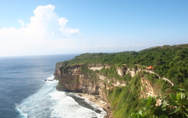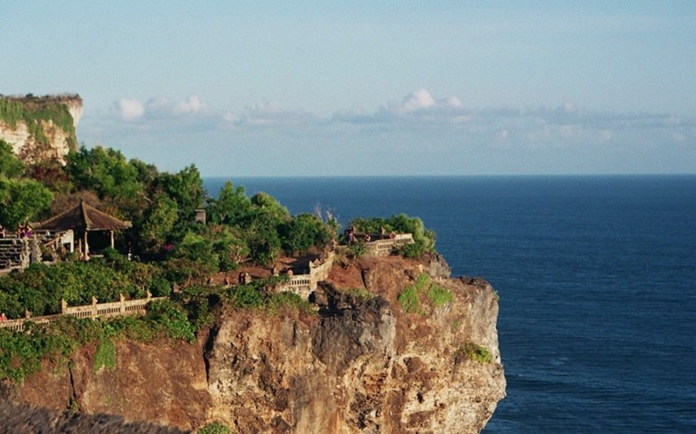 烏魯瓦圖斷崖位于巴厘島最南端。它的背后有一段凄美的愛情悲劇。傳說(shuō)當(dāng)?shù)赜袑?duì)門戶不當(dāng)?shù)那嗄昴信鄳?,女方的父親是村長(zhǎng),因此兩人的愛情的不到任何祝福,在絕望之下雙雙投海殉情。為此地平添了離奇色彩。