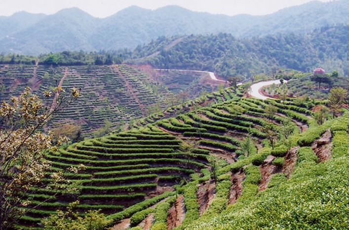 西巖茶鄉(xiāng)以她的秀美、蒼翠和茶田的鮮明層次感,讓你浮想聯(lián)翩,詩興大發(fā),心曠神怡。綠色的茶田連著青山,延綿數(shù)十公里,天上白云在藍(lán)天下顯得更加明媚多嬌。清晨,高山繞著云霧,霧在山中,人在霧中,人間仙境恐怕只有身臨西巖茶鄉(xiāng)才能真正領(lǐng)略。