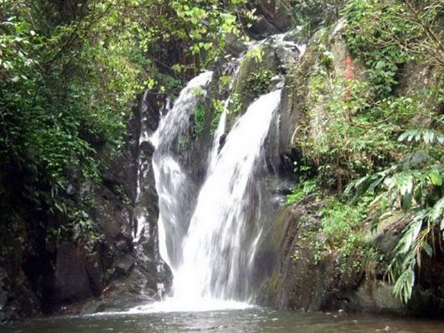 位于縣城西南13公里處的三水鎮(zhèn)大旭山,景區(qū)山高林深、溪水清冽、地勢(shì)起伏、瀑布成群,空氣特別清新。在大旭山,最大的享受當(dāng)然是觀瀑和玩瀑。沿著山徑悠然而上,首先映入眼簾的是“蕉石鳴琴”,蕉林成蔭,山石玲瓏,溪水迤邐,仿如幽雅琴聲。經(jīng)過(guò)木橋,能觀賞到白鶴巖瀑布、野蕉林瀑布、老龜潭瀑布、寶石岸瀑布和藏金洞瀑布,每個(gè)瀑布因山形、地勢(shì)和水量各不相同,形成了風(fēng)采、趣味各異的景觀。