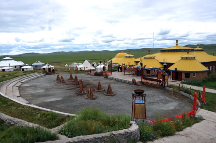 金帳汗旅游部落始建于1994年,是以部落樣式為主體,聚集了以蒙古民族為主的北方少數(shù)民族傳統(tǒng)文化、民俗民風(fēng)、宗教藝術(shù)、餐飲等綜合旅游服務(wù)景區(qū)?,F(xiàn)有固定資產(chǎn)200余萬元,占地面積100萬平方米。服務(wù)區(qū)以蒙古民族特色古樸典雅獨特風(fēng)格的282平方米的磚木結(jié)構(gòu)的蒙古包為主,周圍環(huán)繞坐落成吉思汗金帳、鄂倫春撮羅子、七星帳蒙古包群和達斡爾山莊,還有400多平方米的民族文化多功能涼廳和600平方米多功能觀賞博克擂臺、民族歌舞篝火晚會場等。可同時接待1000余人就餐,100余人住宿;可舉辦大型民族體育賽會和大、中、小型歌舞表演、篝火狂歡晚會等娛樂活動。設(shè)有馬隊迎賓、套馬表演、馴馬表演、馬群瞬間攝影、祭敖包、蒙古族博克表演、鄂倫春、鄂溫克、達斡爾三少民族民情演示、訪牧戶體驗生活、騎馬、騎駱駝攝影、騎馬觀光、乘勒勒車、米日桿車觀光、篝火狂歡晚會、民族歌舞表演、射箭、打彈弓、飛鏢等活動項目,已達到了游、行、住、食、娛、購六大要素為一體的大型民族民情、民族文化的草原景點。