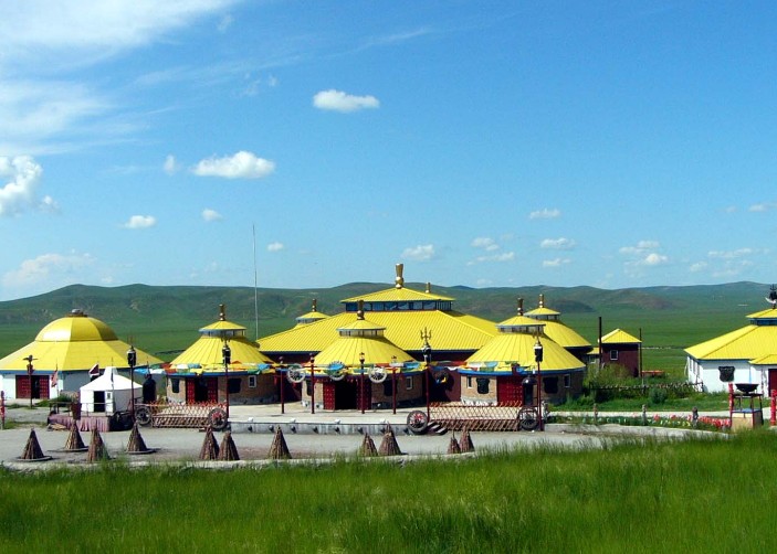 金帳汗蒙古部落是呼倫貝爾唯一以游牧部落為景觀的旅游景點,位于呼倫貝爾草原“中國第一曲水”的莫爾格勒河畔。這里是中外馳名的天然牧場。中國歷史上許多北方旅游牧民族都曾在這里游牧,繁衍生息。十二世紀末至十三世紀初,一代天驕成吉思汗曾在這里秣馬厲兵,與各部落爭雄,最終占據(jù)了呼倫貝爾草原。金帳汗景點的布局,就是當(dāng)年成吉思汗行帳的縮影和再現(xiàn)。