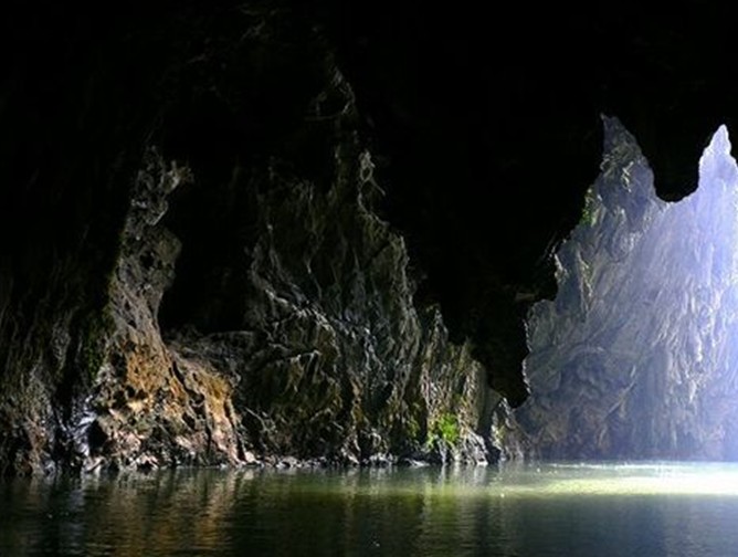 “洞天仙境”是一頗具特色的景點(diǎn),一路上,平坦的公路,兩邊是平坦的田園。規(guī)劃整齊的水田里,禾苗綠意盎然,顏色由深至淺鋪向遠(yuǎn)方,一座奇特的大山就在眼前,通過(guò)寫有“洞天仙境”的大門樓就進(jìn)入到了停車場(chǎng),再行數(shù)十步,有一明鏡般的小湖映入眼簾清漸見(jiàn)底的湖水可見(jiàn)魚在游動(dòng),湖兩邊停放著幾只小船。洞口有一巨大的鐘乳石向下垂吊,山洞口就像龍口,垂吊的鐘乳石就是一條龍利,從藤修蔓垂的巖洞口蕩槳而入,木槳擊破水面的輕微聲響驚出數(shù)十只燕子,版權(quán)所有山東聊城聊之旅國(guó)際旅行社有限公司,轉(zhuǎn)載必究!在眾多奇姿怪態(tài)的鐘乳間穿掠,越發(fā)顯出洞穴的幽奇。穿過(guò)一段狹窄的地方進(jìn)入到洞內(nèi),視野豁然開朗,一個(gè)巨大的山洞有樹木,綠草、野花,抬頭仰望,又有一個(gè)天,這不是夢(mèng)吧!洞中有天,洞天相連,洞中的天一長(zhǎng)一短,酷似一個(gè)巨型的感嘆號(hào),讓人嘆為觀止,細(xì)心觀察那個(gè)長(zhǎng)的還真似臺(tái)灣島的地理版圖,真是讓人驚嘆自然造物的神奇。