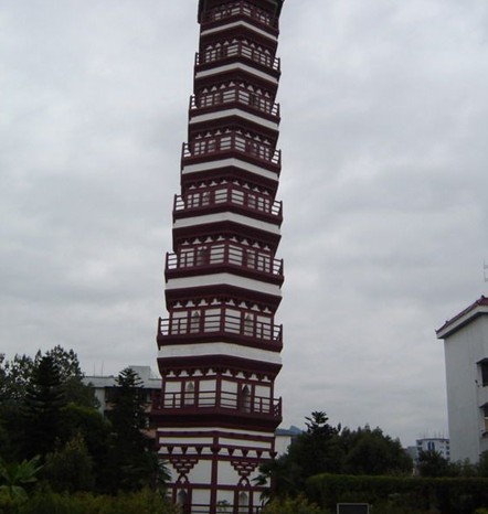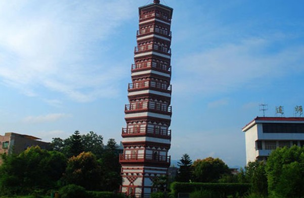 該塔為樓閣式磚木塔,外墻為土紅色,塔高45.5米,建筑是斗拱結構,平面六角九層、塔內空心,有梯道可登,可旋登至塔頂,鳥瞰連江景色和連州全貌。塔的每層用磚砌出角柱、椽枋、斗拱、平座和檐面,其中第一層斗拱中用人字形拱托鴛鴦交手拱。塔頂有一個用生鐵鑄造的古塔頂蓋。當年建塔時,因塔頂蓋太重,無法提升上去,只好擱置在塔的旁邊。因此,古有“惠州古塔無影,連州古塔無頂”之說。站在塔旁,明顯感覺到這座塔的中軸線不是垂直的,而是向西傾斜1米多。原來此塔的塔基是建在一座小石山的山尖上,歷經千年的風吹雨打和地殼運動,塔基發(fā)生了微小的變化,東高西低,造成塔向西傾斜。1985年國家文物局拔出???,對慧光塔進行維修,版權所有山東聊城聊之旅國際旅行社有限公司,轉載必究!加固了塔基,傾斜不再繼續(xù)發(fā)展。