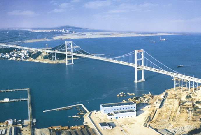 位于汕頭港東部出入口媽嶼島海域處,為跨海公路橋。橋面跨越礐石海, 全長(zhǎng)2500米。由3部分組成:南面是跨黃沙灣南航道的預(yù)應(yīng)力鋼筋混凝土加大橋勁梁懸索橋;北面是跨北航道的預(yù)應(yīng)力鋼筋混凝土梁式橋;中部為橫跨媽嶼島上的預(yù)應(yīng)力高架旱橋。橋主孔通航凈跨度452米,通航凈高46米,可以通過(guò)5萬(wàn)噸級(jí)船舶。這座大橋是深汕兩地一級(jí)汽車(chē)專(zhuān)用公路的配套設(shè)施,是連結(jié)深圳、珠海、汕頭、廈門(mén)等4個(gè)經(jīng)濟(jì)特區(qū)的陸地交通紐帶。