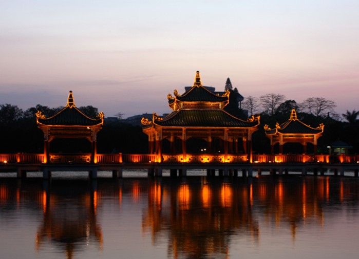 這是1986年建成開放的新景點(diǎn)。它采用中國(guó)庭園設(shè)計(jì)手法,庭廊相接,曲折回環(huán)。館中陳列著各種新奇花卉和盆景。這是一個(gè)小型花苑,如果對(duì)盆景有興趣的游客,在這里可以欣賞到很多各具特色的盆景,在“縮景為寸”的天地中領(lǐng)略到各處大自然的美景。宮苑里一年四季鮮花盛開,有不少是熱帶或寒帶才能生長(zhǎng)開花的品種,所以這里又是一個(gè)鮮花鑒賞的新天地。這座宮苑開放以來(lái),每天都接待不少海內(nèi)外旅游團(tuán)體和個(gè)人,他們都稱贊說(shuō):“這是南國(guó)獨(dú)有的一條風(fēng)景線”。