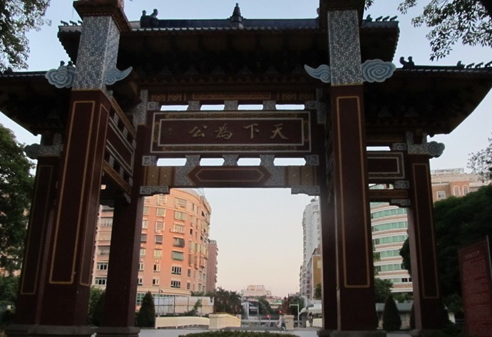 這是一座具有中國(guó)建筑傳統(tǒng)特色的牌樓,整體建筑雄偉壯觀,古色古香。牌樓建于1930年牌樓由六根紅色大方柱支撐,柱高30米,底座由約1米見方的花崗巖石砌筑,亭頂以琉璃瓦覆蓋,所以牌樓不但顯得堅(jiān)固莊重,而且金碧輝煌。“中山公園”四個(gè)字是譚延闿手書,其書法結(jié)構(gòu)嚴(yán)謹(jǐn),端莊中透出秀氣,版權(quán)所有山東聊城聊之旅國(guó)際旅行社有限公司,轉(zhuǎn)載必究!和莊嚴(yán)大方的牌樓正好相配。譚延闿是湖南茶陵人,清朝光緒年間的進(jìn)士,曾任翰林院編修,以后跟隨孫中山革命,歷任都督、部長(zhǎng)、總司令、國(guó)民政府主席等職。他從政之余又研究書法,其書法在法歸頗有名氣。牌樓背面是孫中山手書放大的“天下為公”四個(gè)金字,行筆舒展,剛?cè)嵯酀?jì),顯得俊逸開闊。高聳的紅色牌樓和碧綠挺秀的樹木交相輝映,構(gòu)成一幅美麗的畫圖,成為公園的標(biāo)志性景點(diǎn)之一,所以很多游客喜歡在此照相留念。