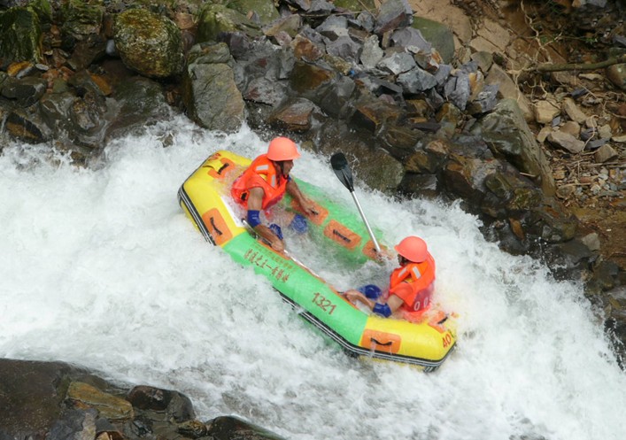 全程勇猛漂河道長4.8公里,總落差168米,大小落差有130多處,漂時150--180分鐘。全程既可感受澎湃刺激而安全的漂流,又能在自然生態(tài)的環(huán)境中享受一流水質的無窮魅力:漂過一山又一山,賞盡一景又一景;人在水中漂,如在畫中游。(提示:1.3米以下的游客請勿參與,16歲以下的游客請在成人陪同下參與