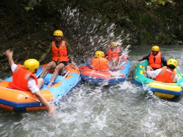 幽谷漂流河段長5公里,落差143米,全程漂流需時約90多分鐘,最驚險一處為“尖叫一線天”,其落差達10米,兩邊全是直聳入云的山石,僅能容一條漂流艇通過。夏日炎炎,遮天蔽日的綠樹在漂流河道上形成一道天然的屏障,讓身在其中的游人感覺無比清涼。漂流源頭隱藏在樹蔭深處,整個漂流地段都隱藏在原始森林中,這也是羊角山漂流又名"地窟漂流"的由來。版權所有山東聊城聊之旅國際旅行社有限公司,轉載必究!景區(qū)有符合安全規(guī)定的漂流河道、安全通道、防護欄、漂流艇等設施,提供救生衣、安全帽等設備;沿途有經(jīng)過專業(yè)培訓的河道服務員、救生員、救護醫(yī)生提供專業(yè)的安全保障。景區(qū)投資“中國首創(chuàng)”的電子全程抓拍系統(tǒng),記錄下80多處游客快樂的一瞬間。