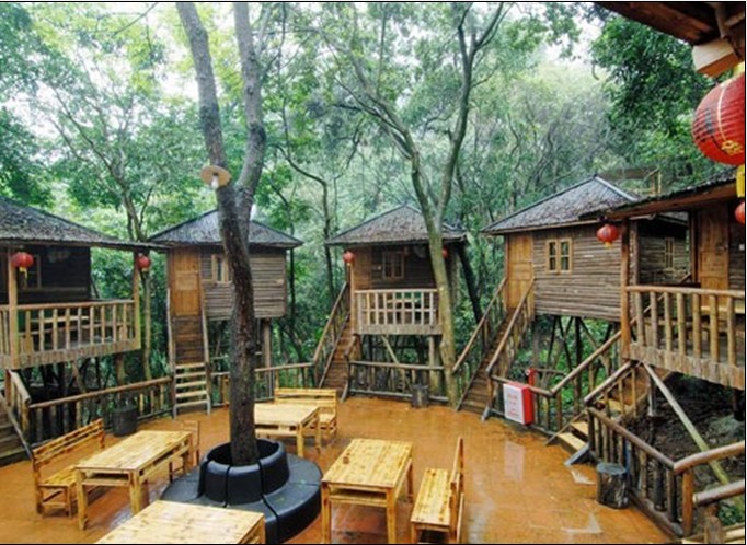 樹屋村,上古人類的家,是我們?nèi)祟愖嫦冗€未步出森林前賴以遮風擋雨、防御野獸侵犯的窩。如今,九州驛站的樹屋村,在還原古人類居住文化的特征上,融入了現(xiàn)代的養(yǎng)生休閑文化而成為驛站的重要特征。身處樹屋村,最能感動人的除了古樸而又獨特的住宿設(shè)施外,感覺更多的是茂盛森林里的原始氣息和土地的芳香,與隔窗相望的雀鳥、昆蟲、松鼠等生命為伴才是建造樹屋、入住樹屋的真正意義。
