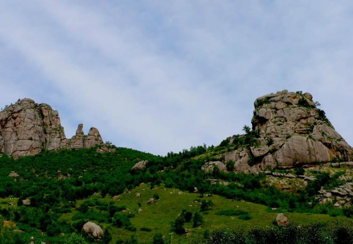 山上巖石千姿百態(tài),劈山石、仙人橋、一線天、崖洞等險峻峭拔;醉臥雙獅、談心巖、三仙巖、望日臺等宏大雄奇;喇嘛巖、獨秀巖、母子巖、朝圣巖、望景峰、熊巖等維妙維肖,呼之欲出;香爐巖、臥馬巖、玉屏峰、繡球石等小巧可愛,形神兼?zhèn)?。諸峰渾然天成,橫縱俯仰,遠(yuǎn)近高低則景致迥異。喇嘛池、南八仙、中岳、南岳、烏龍洞,別有洞天,或巖、水、林相映成趣,或自鑄一格,別成一景?!?/p>