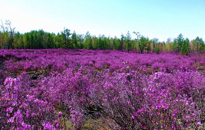 興安杜鵑林沿“林海石瀑”圍成一周。版權(quán)所有山東聊城聊之旅國際旅行社有限公司,轉(zhuǎn)載必究!每值五月中旬,姹紫嫣紅的興安杜鵑襯著尚未完全消融的皚皚白雪,在沉睡九萬多年的玄武巖上怒放。紅色杜鵑花和白色的積雪交相輝映,錯落有致地分布著,苑若仙境。所以,這里也稱"杜鵑花山谷"。每年的興安杜鵑節(jié),這里都有欣賞興安杜鵑的活動。