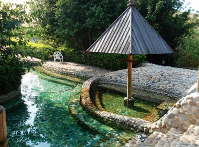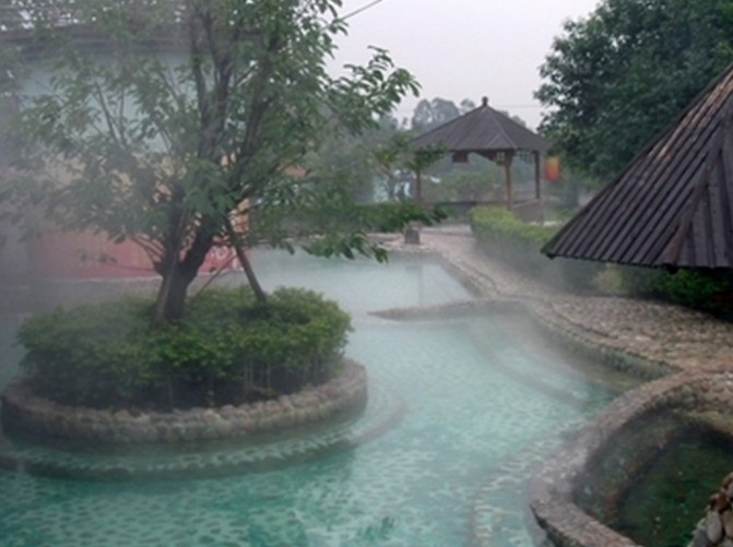 度假村經(jīng)名山高人斟點依大風(fēng)水格局,合溫泉自涌地點,北建天池面積200平方,分高、中、低溫池、水療臺靜動有諧,體會到一覽眾山小“百泉盡沐身,心靜滌塵埃,洗棄煩心事,又是好一天”的境界.南建八卦溫泉,把人的十二生肖鑲?cè)氚藗€卦位池,在泡溫泉中體會 “沐八卦,轉(zhuǎn)乾坤”的作用.龍華池(南天池)在村內(nèi)最高點,有隔山湛凌兩水之能。南北之中:人工壘起一座山依圓潤四周來風(fēng),南北之中建有長50米,面積1000平方的溫泉游泳館,讓人們在運動中體驗溫泉水的作用。南北之中建一地下溫泉迷宮,在泡溫泉中體會“下地入宮尋往事,死去活來又一回”脫俗之感.東南建有保健中心,東北建有水上餐廳,正南和西南建有風(fēng)格各異的賓館區(qū)和別墅區(qū):有采用天然杉木按風(fēng)水五行建成的水木龍華、金木龍華、土木龍華、火木龍華、杉木坊、杉木居、怡然閣和賓館A區(qū)、B區(qū)等居住區(qū)。以營造家庭氛圍,鄉(xiāng)土風(fēng)情,風(fēng)水與人體相合為主題,體會“日沐溫泉浴,夜聞鳥蟲鳴,春夢一覺醒,仿如在仙境”清心正本作用。