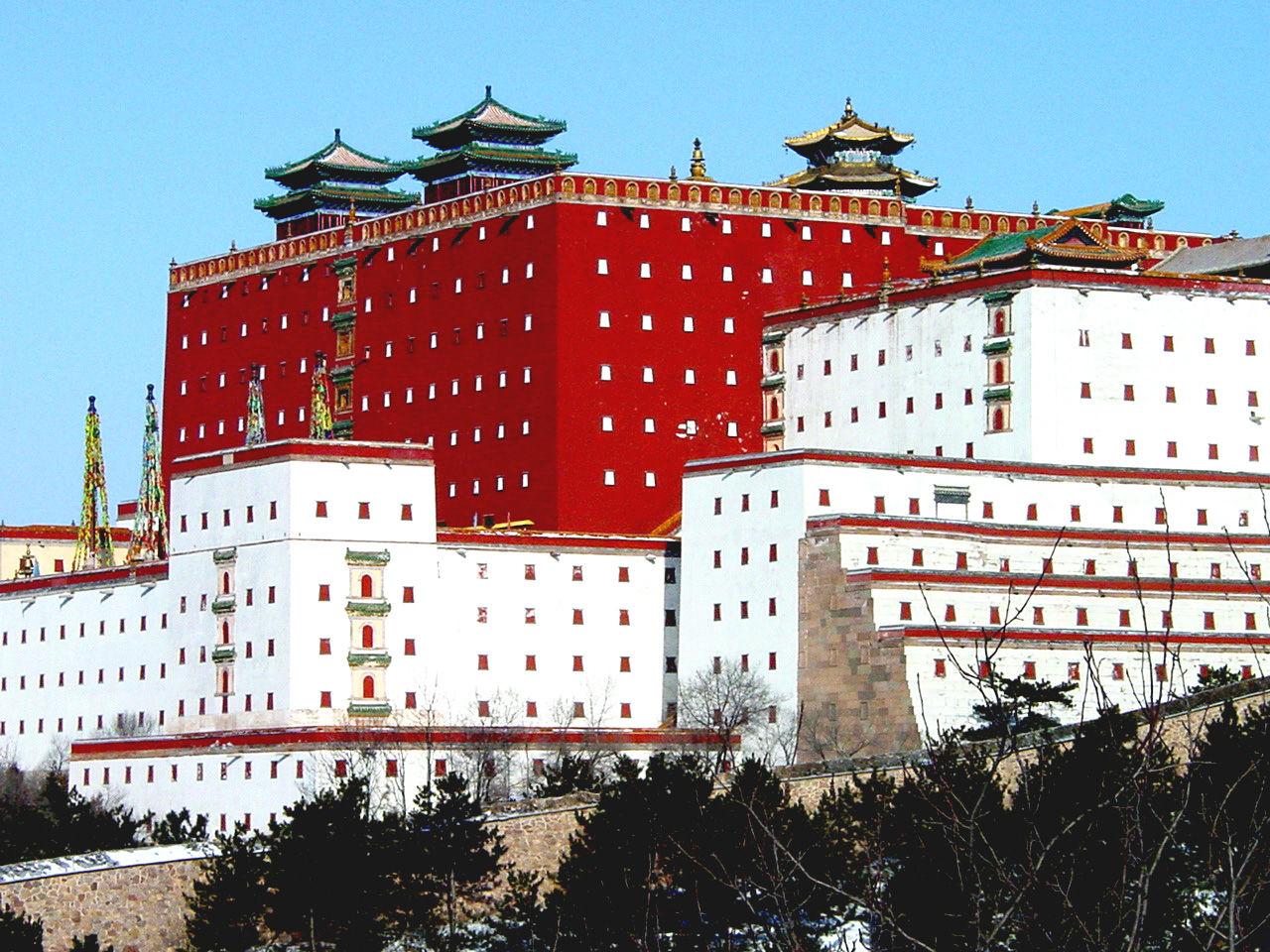 普陀宗乘之廟位于河北省承德市獅子溝北側(cè),占地22萬平方米,為承德外八廟中規(guī)模最宏大者。建于乾隆三十六年(1771年),是乾隆為了慶祝他本人60壽辰和他母親皇太后80壽辰而建的。殿宇依山就勢,布局自然,富于變化,版權(quán)所有聊城聊之旅國際旅行社有限公司,轉(zhuǎn)載必究!基本是藏傳佛教的建筑風格。主體建筑位于山巔,60余座(現(xiàn)存40余座)平頂?shù)锓渴桨着_和梵塔白臺隨山勢呈縱深式自由布局,無明顯軸線。全廟布局、氣勢仿拉薩布達拉宮,俗稱“小布達拉宮”。乾隆皇帝在這里接見了萬里東歸的土爾扈首領(lǐng)渥巴錫一行,并舉行了隆重的講經(jīng)、說法、祝壽等活動。