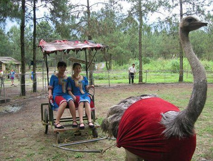 鴕鳥寨(養(yǎng)殖場(chǎng))位于乳源縣城東12公里,距云門大覺禪寺7公里,距韶關(guān)市區(qū)39公里。鴕鳥寨集鴕鳥的孵化、養(yǎng)殖、繁殖、屠宰、皮革、羽毛加工、飼料制造及觀光旅游,餐飲旅業(yè)于一體的三高農(nóng)業(yè)之一部分,總規(guī)劃占11000畝,目前已擁有屆同齡鴕鳥群約2000只。鴕鳥寨生態(tài)旅游區(qū)由幼鴕區(qū)、小鴕區(qū)、中鴕區(qū)、種鴕區(qū)、臺(tái)灣果園、現(xiàn)采蔬菜區(qū)、釣魚區(qū)、兒童游樂區(qū)、鴕鳥游樂區(qū)、燒烤區(qū)、民族文化廣場(chǎng)及原野滑草場(chǎng)與度假別墅區(qū)所組成。