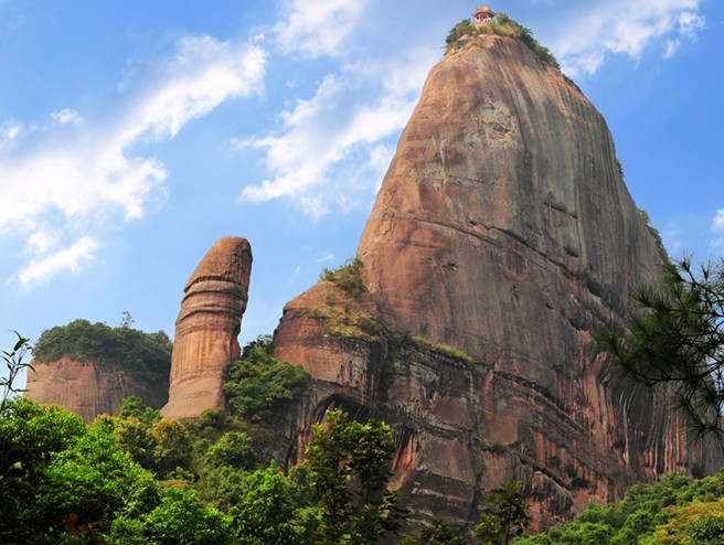陽元山與丹霞山(長(zhǎng)老峰)隔河相望,它因有天下奇石陽元石而得名。這里的山石不論大小,均構(gòu)成奇特的地貌造型,該區(qū)是以陽元石為中心的一塊山地,是丹霞山景區(qū)內(nèi)的一個(gè)單元游覽區(qū)。