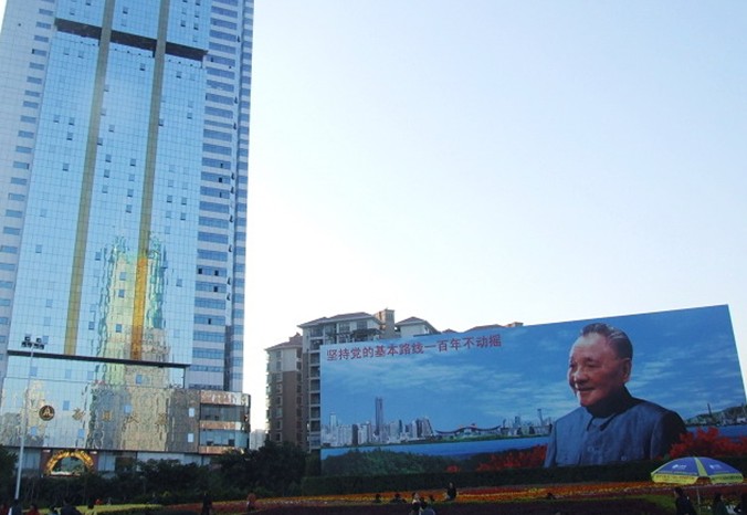 鄧小平畫像是位于中國廣東省深圳市福田區(qū)深南大道北、荔枝公園東南口的巨型室外宣傳畫,始建于1992年6月28日,是深圳標志之一,深圳的著名旅游景點。近年來已成為海內(nèi)外游客緬懷這位中國改革開放總設計師的最佳去處。 據(jù)有關方面統(tǒng)計,每年大約有百萬以上游人來此與這位世紀偉人“合影留念”。 鄧小平畫像自建成以來,就不斷有來自世界各地游客前來參觀。小平同志逝世以后,這個數(shù)字更是逐年攀升,深圳各大旅行社早已將畫像列為深圳游必不可少的站點。