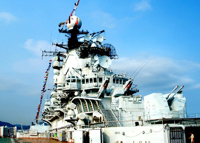 曾記,飄揚(yáng)著前蘇聯(lián)海軍軍旗的明思克號(hào),以艦長(zhǎng) 273米的龐大身軀、3.6萬(wàn)噸的排水量橫沖直撞于遠(yuǎn)東海域,直逼與美國(guó)阿拉斯加相鄰的重要水上通道----白令海峽以及日本海、中國(guó)黃海和東海海域。每當(dāng)明思克駛出蘇聯(lián)太平洋艦隊(duì)司令部海參崴軍港,除航母自身配置的強(qiáng)大戰(zhàn)斗群外,在艦隊(duì)的不遠(yuǎn)處,版權(quán)所有山東聊城聊之旅國(guó)際旅行社有限公司,轉(zhuǎn)載必究!會(huì)適時(shí)出現(xiàn)美國(guó)以偵察機(jī)和潛艇警戒群組成的護(hù)航隊(duì)伍,真可謂聲勢(shì)浩大,不可一世。冷戰(zhàn)結(jié)束后,明思克退役。1993年該艦被賣(mài)至韓國(guó),1998年6月,被深圳明思克公司收購(gòu),并開(kāi)辟成“軍事題材”的旅游項(xiàng)目。