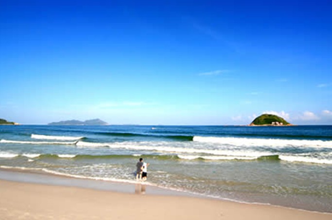 邊的岬角呈半封閉狀環(huán)抱海面,使海灣似新月,海面如平潮,沙灘孩坡平緩,150米內(nèi)水深不超過1.2米,成為我國東部沿海一處不可多得的天然海濱浴場,是廣東省兩個A級海濱天然浴場之一,素有“東方夏威夷”之稱。國家領(lǐng)導(dǎo)人,外國客商、文人墨客對美麗的青澳灣贊不絕口,稱之為“泳者天池”。