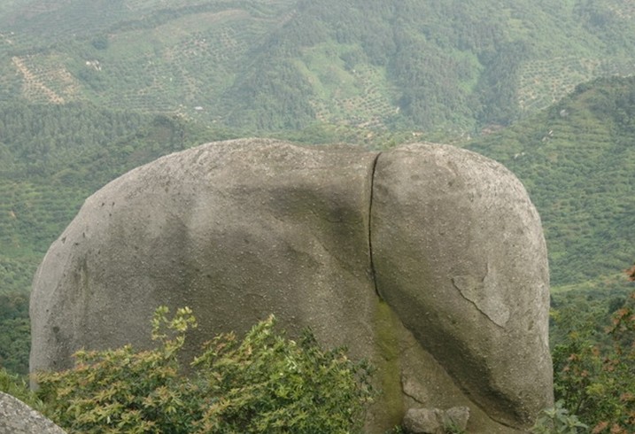 由市區(qū)、南山乘101、226、104、M203、240、B796等到西麗湖,搭摩的(10元/人*車)沿沁園路經(jīng)麒麟山莊、療養(yǎng)院、大勘村、福利農(nóng)場到黃金坑村。由黃金坑耕作口(武警把關(guān),需好言商量)出關(guān),穿過農(nóng)田、養(yǎng)豬場向北上山。一路沒有明顯山路,行于荔枝樹和灌木雜草中,一定要注意方向——正北。40分鐘上到小山頂后可西北望羊臺。前下方一道山谷,有三五間農(nóng)宅(香對壢),對面山腰以上可見防火隔離帶。尋路下谷底再上到隔離帶后一路西北向登山,經(jīng)蔦歌山沿山脊前行,約2—3小時可達羊臺山頂。蔦歌山有一奇景:一巨石由北南望極似大象:頭東尾西,眼、耳、鼻、四肢清晰可辯,甚至尾巴也有。惟妙惟肖,令人驚嘆。