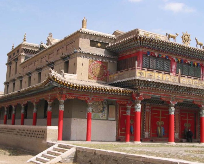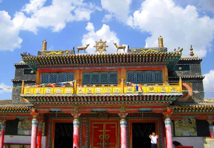但那個時候,噶爾丹是朝廷的罪人,是不能大事鋪張的。所以,這個可憐的女人,就把噶爾丹的遺體簡單地埋葬在希拉穆仁河邊。這座墳?zāi)?,十有八九就是今天召河(希拉穆仁)?zhèn)所在地西南一公里的王墓。版權(quán)所有山東聊城聊之旅國際旅行社有限公司,轉(zhuǎn)載必究!此是后話,按下不提。掩埋了丈夫的遺骨,帶著丈夫的遺孤,藍琪兒遠遠地離開了希拉穆仁,回到養(yǎng)育了她丈夫的故地,潛心撫育她心愛的兒子??滴跞f歲爺雖然消滅了噶爾丹,但對于藍琪兒的命運仍十分關(guān)注。也是命里注定,席力圖召的五世活佛圓寂了。六世活佛應(yīng)該轉(zhuǎn)世在哪里?萬歲爺派遣密使,前往西藏,如此這般。不久,席力圖召大喇嘛得到旨意,到喀爾喀蒙古尋找,最后,找到了噶爾丹的遺孤、藍琪兒的兒子,將他命名為阿嘎旺老布生達瓦,成為席力圖召第六世活佛。以后的事情,正如您已經(jīng)知道的,席力圖召六世活佛在希拉穆仁河畔建造了這座規(guī)模宏大的普會寺。普會寺的大門與王墓遙遙相望。他的目的,一方面是將其作為席力圖召的夏季避暑勝地;另一方面,則是為了讓他父親的亡靈,永遠得到佛教的護佑。