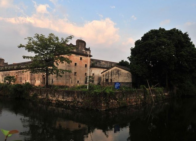 與別的客家圍屋不同,龍?zhí)锸谰尤姝h(huán)水,水面寬約16米,呈半圓形,另一面是高大的圍墻,水面上一座小橋,通往對(duì)岸的一個(gè)亭子。想來(lái)那是當(dāng)年迎客的接風(fēng)亭,或者是警惕外敵的了望哨所??梢?jiàn)當(dāng)年的守衛(wèi)十分森嚴(yán)。據(jù)介紹,這個(gè)半圓形的河岸與外墻成“龜背”狀圖案,為各地圍屋所少見(jiàn)。圍屋四周的花園曲徑通幽,走進(jìn)花園猶如走進(jìn)歐洲中世紀(jì)的古堡花園,綠樹(shù)鮮花散發(fā)出來(lái)的芬芳令人陶醉,這是典型的嶺南客家式的地主莊園。