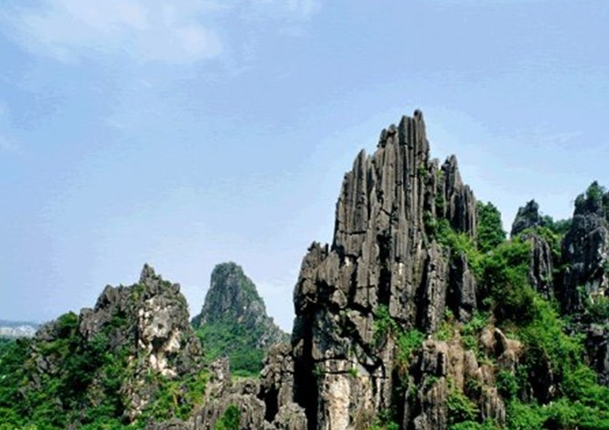 春灣石林,又名“蓮花洞石林”,位于陽(yáng)春市春灣鎮(zhèn)春灣風(fēng)景區(qū)內(nèi),占地200多畝,山上有馬頭峰、駱駝峰、蓮蓬峰、蛤蚧石、觀音拜月石、仙人過(guò)坳石、百頁(yè)劍門(mén)等怪石。從百頁(yè)劍門(mén)進(jìn)入石林中,石峰奇突,景象萬(wàn)千。有似“童子拜觀音”、“猛獅過(guò)嶺”、仰天嗥叫的野狼像等石頭。春灣石林位于陽(yáng)春市,距龍宮巖600米,是一大片石林,由"百頁(yè)劍門(mén)"、"馬頭峰"等6座石山峰巒組成,最壯觀的是石劍峰(也叫百頁(yè)劍門(mén)),如刀槍劍戟,挺拔陡峭、直插云天。著名詩(shī)人韋丘吟為"萬(wàn)把青銅劍,鋒芒指夜天,版權(quán)所有山東聊城聊之旅國(guó)際旅行社有限公司,轉(zhuǎn)載必究!將軍何處去,戰(zhàn)馬系槽前",廣為傳誦。春灣風(fēng)景區(qū)還有"通真巖"、"慈云巖"、"通天蠟燭"、春灣公園等景點(diǎn)。