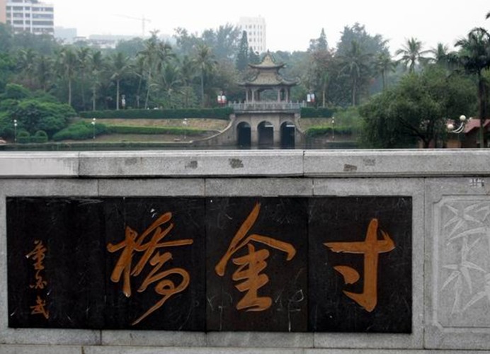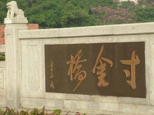 寸金橋位于湛江市赤坎區(qū)寸金路原廣州灣租界西面界河赤坎河(又稱(chēng)文章河)上。河水連接寸金橋公園月影湖,橋之西為華界,橋之東為租界,是為紀(jì)念1898 ━1899年遂溪人民反抗法國(guó)強(qiáng)租廣州灣的斗爭(zhēng)的史志性建筑物。1925年遂溪縣麻章區(qū)紳民建,原有的“寸金橋”隸書(shū)橋名刻石,現(xiàn)存湛江市博物館。抗日戰(zhàn)爭(zhēng)時(shí)期重修,1959年和1986年擴(kuò)建,為石砌單拱式水泥橋面橋梁,全長(zhǎng)19米、面寬11.6米,單拱園徑6.5米,橋面南北兩側(cè)各置欄柱,人車(chē)分道。橋頭東西有董必武、郭沫若題詞橋匾,董必武題書(shū)“寸金橋”,郭沫若題“一寸河山一寸金”。接著,路改名寸金路,版權(quán)所有山東聊城聊之旅國(guó)際旅行社有限公司,轉(zhuǎn)載必究!公園改名寸金橋公園,車(chē)站和酒家均以“寸金”命名。一九五九年人民政府重修“寸金橋”,并于橋旁立碑(有碑文),從此“寸金橋”成為抗法斗爭(zhēng)的一個(gè)象征性建筑物。一九六○年,郭沫若到湛江觀看粵劇《寸金橋》,題詩(shī)有“一寸河山一寸金”之句,“寸金橋”名聲更著。 西山公園一九八○年改名“寸金橋公園”(因“寸金橋”在其旁,公園博物館內(nèi)有抗法斗爭(zhēng)專(zhuān)題陳列)。一九八四年初又于公園內(nèi)豎立大型雕塑《寸金橋抗法斗爭(zhēng)紀(jì)念雕像》,參觀的人絡(luò)繹不絕。