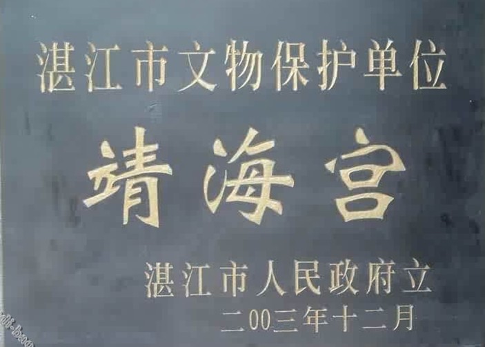 雷州靖海宮坐落于廣東湛江市雷州南渡河畔的夏嵐北村,距雷州城約10公里。此廟始建于明代,因廟臨大海,而奉祀的又是被譽(yù)為“海峽和平女神”的媽祖林默娘,故取名“靖海宮”?,F(xiàn)為雷州市文物保護(hù)單位。“靖海宮”建筑古樸典雅,宮里除神像外,還供奉著一塊黑色的大石。這塊石頭相傳以前有一位漁民海里拖網(wǎng)捉魚,一天起網(wǎng)時,網(wǎng)里沒有一條魚只有一塊大石。他氣極,隨手把石頭拋回大海。但奇怪的是,他換了幾個地方下網(wǎng),都網(wǎng)起這塊大石。他懷疑是神靈作怪, 便對石頭許愿道:“如果你是神靈,就保佑我捕魚滿艙,我立你為神。”后來,他天天滿載而歸。漁民很高興,便將石頭立在沙灘上,蓋起寺廟供奉。幾百年來,這靖海宮香火不斷 靖海宮離海邊不過十余米,離海面也不過二三米高,但據(jù)當(dāng)?shù)貪O民說,不管海上有多大的風(fēng)浪,海水都打不到宮里。
