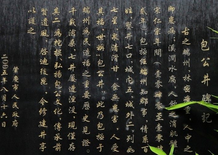 宋代名臣包拯,在肇慶任端州知郡事3年,為官清廉,大辦實事,造福端州。當時居民因長年飲用不潔凈的水,瘟疫、疾病時有發(fā)生.包拯發(fā)動群眾在城區(qū)開挖水井七口,居民感激包公將這七口水井稱為包公井。肇慶的水井到了清末民初已數(shù)不勝數(shù),基本上所有街巷都有飲用水井.由于包公井年代久遠,七口井在何處,卻鮮為人知.據(jù)元末明初郡人董源《義井記》云:相傳郡城包公所鑿之井有七:一在府治內(nèi).在府治西岳廟旁則第二井也.在縣學(xué)前街南,俗稱義井,則第三井也.其四是分司巷口.其五在廣濟倉右.其六在北門之左.其七在主帥堂前。