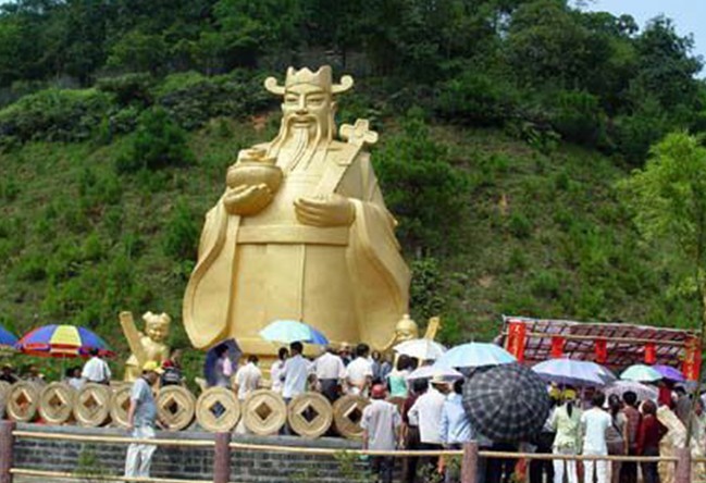 聚寶天地和君子園兩大部分:進入由金磚作墻、兩錠巨大金元寶托起一串金燦燦的古錢幣的景區(qū)大門,便是聚寶天地,走過九宮八卦飛星圖轉(zhuǎn)運壇。隔湖可見一尊全國最大的財神塑像,手捧聚寶盆向人們惠賜財運,轉(zhuǎn)身而望,兩塊寶錠與一座青山組成的天然巨大寶錠遙遙相對應,何其相似乃爾!環(huán)湖邊是一條由一個個金錢鋪就的丁財路。