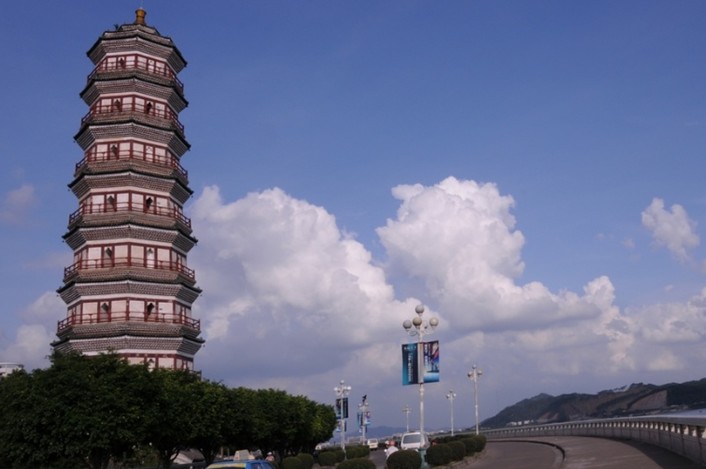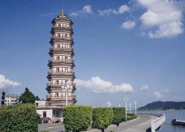 位于廣東肇慶市西江岸上,建于明萬(wàn)歷十年(1582年)九月,由嶺西副使王泮興建,萬(wàn)歷十三年(1585年)四月竣工。因西江水“滔滔而東,其氣不聚,人才遂如晨星”,若建塔聚氣,可使人才輩出;又因西江水患頻仍,建塔可鎮(zhèn)住“禍龍”,永固堤圍,于是有造塔之舉。而塔名,則取“文運(yùn)興旺”、“鴻福無(wú)疆”之意。它屹立于塔腳路北側(cè)的石頂崗上,巍峨壯觀,氣勢(shì)非凡,堪稱四塔之冠。
