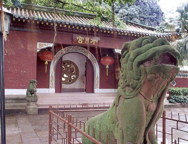 水月宮,位于肇慶市星湖中心區(qū)石室?guī)r南麓,北靠崧臺,面臨紅蓮湖,曾因立有高6米、重7噸的銅鑄佛像摩利支天而聞名省港澳和東南亞各國。 水月宮原為觀音堂,建于明嘉靖年間(1522-1566年),但“頻年為風(fēng)雨所折”,后得官民“樂于趨事”,遂于明萬歷二年(1574年)冬“辟廣升高,壯址展基”。 據(jù)傳,觀音能顯現(xiàn)32種不同的應(yīng)化色相,其中以“水月”色相最為高潔,因名“水月宮”。