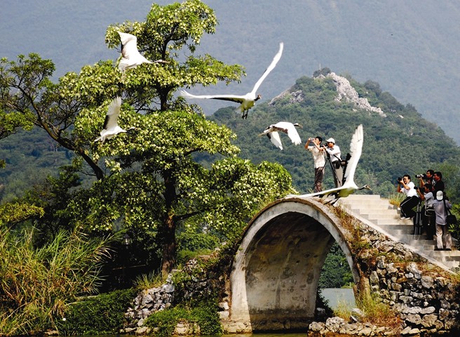 游人可乘坐仿古游船近距離觀看保護(hù)區(qū)內(nèi)的自然候鳥和濕地風(fēng)光,也可以登上鶴島,穿梭于木棧道之中,欣賞一生難得一見的“世界絕活”丹頂鶴編隊(duì)飛翔。也可以通過鶴島上設(shè)置的望遠(yuǎn)鏡遠(yuǎn)距離觀賞候鳥。同時(shí),星湖濕地公園也是一個(gè)重要的科普教育基地。現(xiàn)規(guī)劃在大攬崗?fù)ㄟ^對現(xiàn)有建筑進(jìn)行改造,建立濕地宣教中心。濕地宣教中心設(shè)多媒體展示中心、宣教圖片展覽室、標(biāo)本室和魚類館,版權(quán)所有山東聊城聊之旅國際旅行社有限公司,轉(zhuǎn)載必究!配置陳列與展示柜、辦公用具以及計(jì)算機(jī)、投影機(jī)、電視機(jī)、錄像機(jī)等儀器設(shè)備,通過圖片資料展覽、實(shí)物展示和放映展示濕地優(yōu)美環(huán)境和濕地保護(hù)知識(shí)的錄像、電影、電視片等,對群眾進(jìn)行集中宣傳教育。規(guī)劃建筑面積600多平方米。星湖濕地公園是廣東肇慶市生態(tài)系統(tǒng)的重要組成部分,是肇慶市天然的“城市之腎”;是肇慶市作為山水名城、國家歷史文化名城、全國優(yōu)秀旅游城市的重要載體;是肇慶市“千里旅游走廊”上的明珠;是我國南方濕地珍稀水禽人工繁殖的國家級(jí)基地;是廣東省濕地生態(tài)科普教育基地。所以,星湖濕地公園是游人悠閑、度假、觀光以及增長見聞的好去處,是宣傳濕地保護(hù)的一個(gè)重要載體。