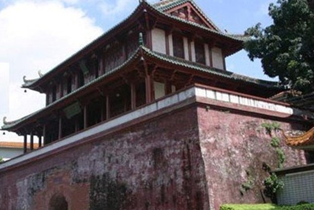 肇慶麗譙樓原名御書樓,又稱永明宮、紅樓,坐落在肇慶市城中路。宋徽宗趙佶曾為端王,端州是他的封地,繼皇位后,升端州為府,御書“肇慶府”。府衙前曾筑高臺建樓,名御書樓。明天順六年(1462年),郡守黃瑜重建,改稱為麗譙樓。明末(1646年),桂王朱由榔抗清時在此登基,改作永明宮。建國初,因該樓紅色,俗稱紅樓。麗譙樓曾陳列銅壺滴漏、乾寧銅鐘、大藤鼓等報時器,以報時刻。