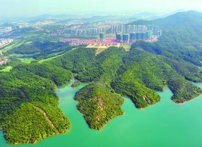 長(zhǎng)江疊翠是中山市新十景之一,指的是長(zhǎng)江水庫(kù)游覽區(qū),這里離中山城區(qū)中心石岐東南九公里,是建設(shè)在著名抗日游擊根據(jù)地五桂山區(qū)北面的以水庫(kù)為中心的游覽區(qū)。水庫(kù)1963年基本建成,它包括里面相連的6條大水坑,7處山梁山埔和一道攔庫(kù)大壩,集水面積三十六 平方公里,庫(kù)容達(dá)五千萬(wàn)立萬(wàn)。雄偉的水庫(kù)大壩頂面寬6米多,長(zhǎng)330米。往水庫(kù)區(qū)里望, 莽莽群山,重巒疊嶂,一望無(wú)限的松林,郁郁蔥蔥,還有杉樹(shù)、樟樹(shù)、苦楝…等和許多叫不出名字的樹(shù)木。一派生機(jī),濃綠如絨如砌,倒映湖中,就是這里美景"疊翠"風(fēng)韻之所在。
