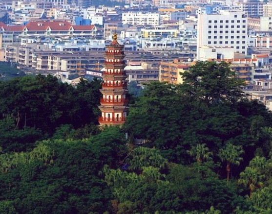 阜峰又名煙墩山,位于市區(qū)中心。阜峰文塔就是山上的一座七層八角的磚塔,又名煙墩花塔,是中山市新十景之一。該塔明朝萬歷三十六年(1608年)興建,經(jīng)歷了380多年滄桑。塔高24.5米,內(nèi)有石級直登塔頂,可四周眺望,石岐城區(qū)風(fēng)光盡收眼底。1983年,中山縣石歧鎮(zhèn)人民政府重修古塔,塔身增設(shè)燈飾,晚上華燈初上,更顯燦爛輝煌。阜峰文塔建于明代萬歷三十六年(1608年)九月,知縣蔡善繼創(chuàng)建。