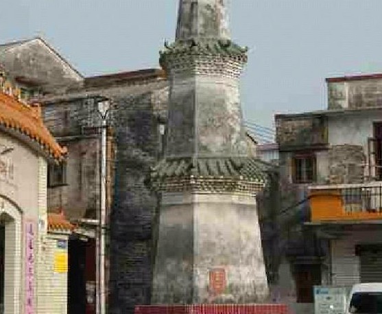 龍瑞塔位于廣東中山市沙溪鎮(zhèn)溪角龍瑞村,建于明代,是鄉(xiāng)民為紀(jì)念溪角祖先而建。相傳宋代時(shí)此處有一塊一人高的石板,稱為企人石,建塔時(shí)把企人石含于塔內(nèi)。該塔為八角攢尖頂,內(nèi)為實(shí)心體,底面周長12.8米,高5層,約11米,為六角攢尖頂,樓閣式磚結(jié)構(gòu),紅方磚鋪地。底層面積39平方米。第五層窗額鑲嵌有“天章”石匾,門額石匾陽刻楷書:“云漢為章”。