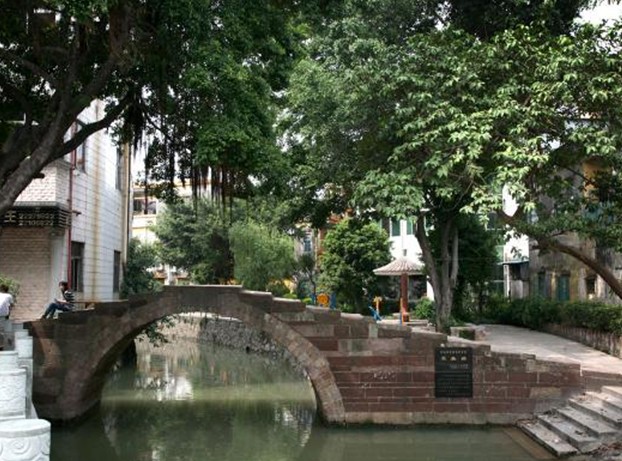 雙美橋位于小欖鎮(zhèn)永寧北街,雙美橋原是橫跨水色匝,南連永寧北村北街,東接藍(lán)田大街的主要交通樞紐,隨著經(jīng)濟(jì)發(fā)展,其功能逐漸被距10多米之遠(yuǎn)的一座平坦開闊的水泥隱橋替代。雙美橋、水泥隱橋和藍(lán)田大街尾段依稀組成了一個(gè)三角形,水泥隱橋那一邊人來車往,雙美橋這邊卻許久候不到丁點(diǎn)人跡。