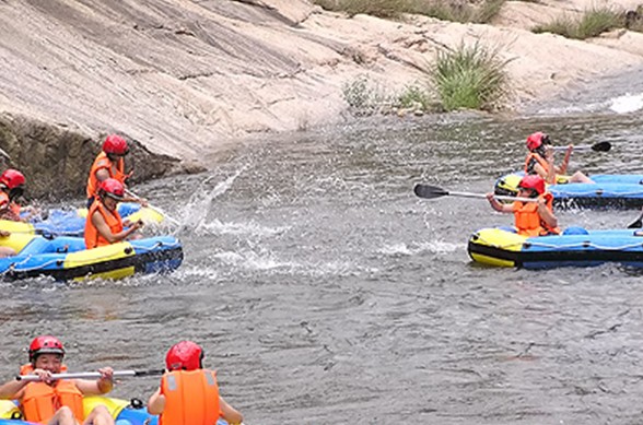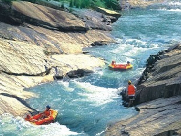 濃蔭覆蓋下的漂流河,約一千多米長(zhǎng),全天然五桂山溪水,白玉般蜿蜒曲折于蒼天翠林中,溫柔與刺激并行。遇激流,可體驗(yàn)狂濤浪聲中穿梭的驚險(xiǎn)刺激,享受那飛越的驚喜,既刺激又鍛煉人的意志;在淺灘,版權(quán)所有山東聊城聊之旅國(guó)際旅行社有限公司,轉(zhuǎn)載必究!溫柔的滑行,可賞兩岸滿目山景,聽小鳥淺吟低唱,清心潤(rùn)肺......激流澎湃的礦泉水,一波波簇?fù)?,岸邊錯(cuò)落的綠意,引來幾只野鳥停駐,幽幽翠竹林。