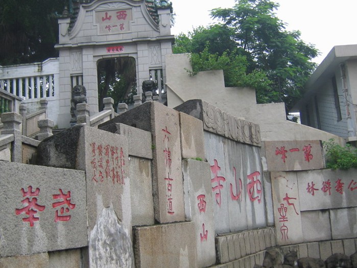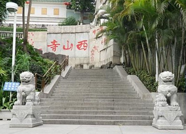 中山西山寺俗稱西山寺,位于廣東省中山市城區(qū)西山公園內(nèi),始建于明朝嘉靖年間,是讀書(shū)人喜聚之地。清道光年間,邑人曾望顏曾在此攻讀詩(shī)書(shū),至咸豐六年(1856年)他任陜西巡撫署四川總督時(shí),特募資將古寺加以擴(kuò)建。由隱泉庵派僧人心恒為主持,歷代相傳,到1949年已傳至十三代?,F(xiàn)寺內(nèi)有伽蘭殿、韋陀殿、大雄寶殿、準(zhǔn)提殿、觀音殿、六祖殿、地毅殿、塔殿等,頗為壯觀。