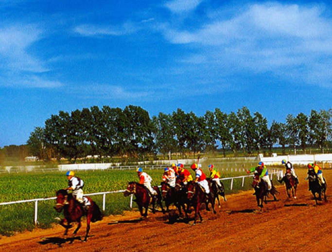 大慶草原賽馬場(chǎng)坐落在泰康鎮(zhèn)西郊,占地面積15萬(wàn)平方米?,F(xiàn)有職工112人,可參賽馬匹118匹。 賽場(chǎng)開闊,景色宜人,傍城近鎮(zhèn),緊鄰蒙古村,亦是旅游觀賞的極佳場(chǎng)所。賽馬場(chǎng)始建于1993年,是那達(dá)慕大會(huì)賽馬的場(chǎng)所,當(dāng)時(shí)定名為大慶賽馬場(chǎng)。1997年經(jīng)市委、市政府決定,通過(guò)重新修建改造,增加了它的功能,成為旅游有獎(jiǎng)現(xiàn)代賽馬的旅游景點(diǎn)。改名為大慶草原賽馬場(chǎng)。賽馬采用國(guó)際通用的胡特馬閘起跑,擁有騎術(shù)高超的專業(yè)騎士,所有賽馬均經(jīng)過(guò)悉心調(diào)教,完全能夠完成現(xiàn)代賽馬的需要,并在原有民族賽馬活動(dòng)的基礎(chǔ)上開發(fā)制定了規(guī)范和完整細(xì)致的現(xiàn)代有獎(jiǎng)賽馬管理規(guī)則,使賽馬更具有競(jìng)爭(zhēng)性、可觀性、大眾參與性及民族娛樂(lè)性,充分體現(xiàn)了現(xiàn)代賽馬的公平、公正、公開的原則。賽馬場(chǎng)自開賽以來(lái),已成功接待了國(guó)內(nèi)外游客25萬(wàn)人次,同時(shí)還接待了中央、省、市各級(jí)領(lǐng)導(dǎo)56次。通過(guò)賽馬提高了該縣乃至大慶旅游業(yè)的知名度,弘揚(yáng)了蒙古民族文化,現(xiàn)代的大慶草原賽馬場(chǎng)連同我縣的連環(huán)湖、壽山休閑度假村已經(jīng)形成了大慶的金三角旅游熱線,吸引了大批游客。